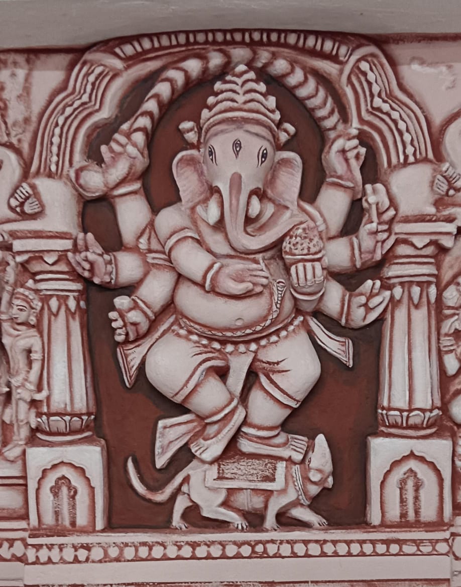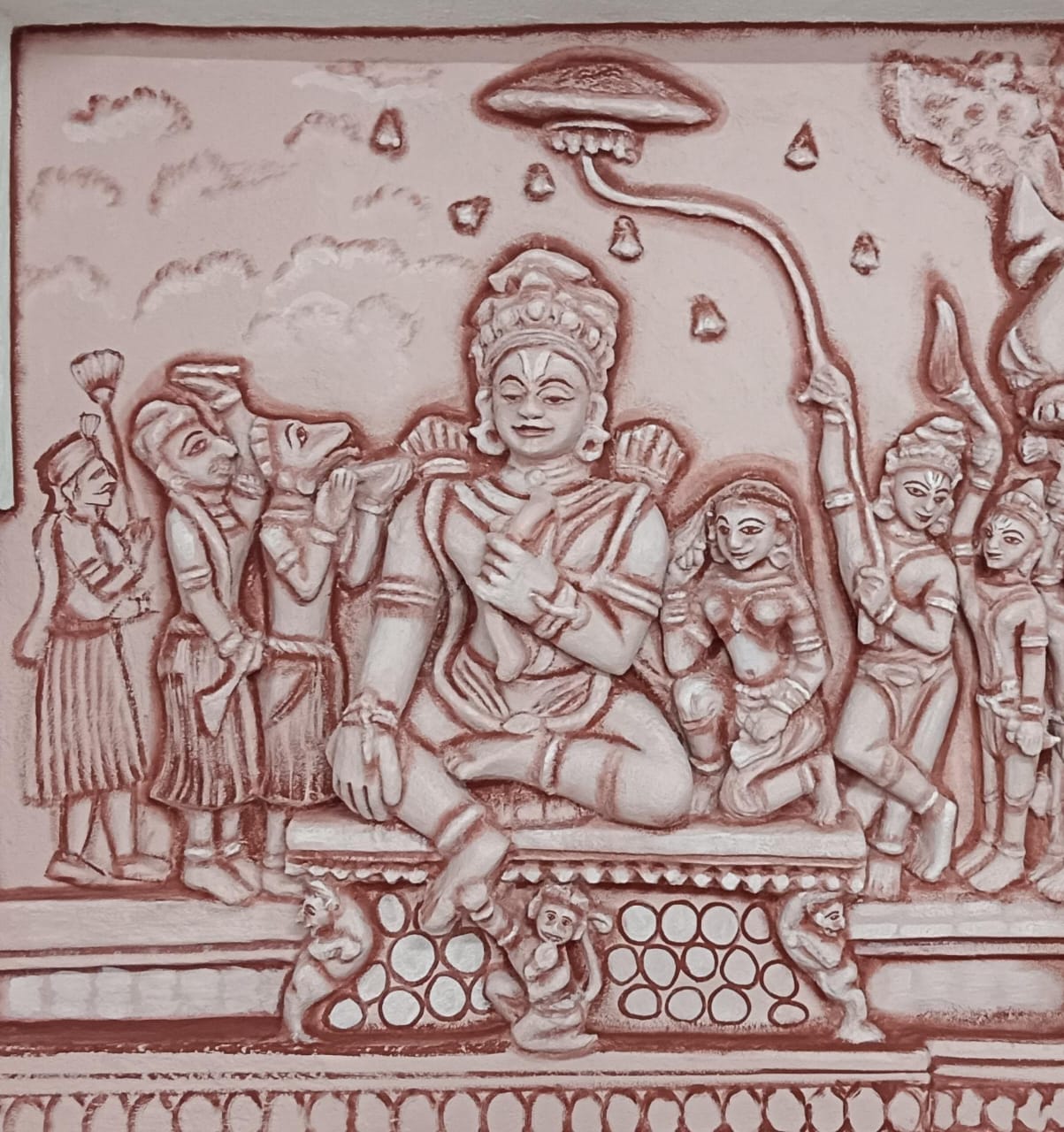 This auspicious institution was full of wall embossingโs sculptures, alcoves, and wall paintings. Most of them have been destroyed due to a lack of proper maintenance; still few sculptures, etc., are here, which are in the process of preservation. Below, we have included before-and-after images showcasing the restoration process and the remarkable improvements achieved.